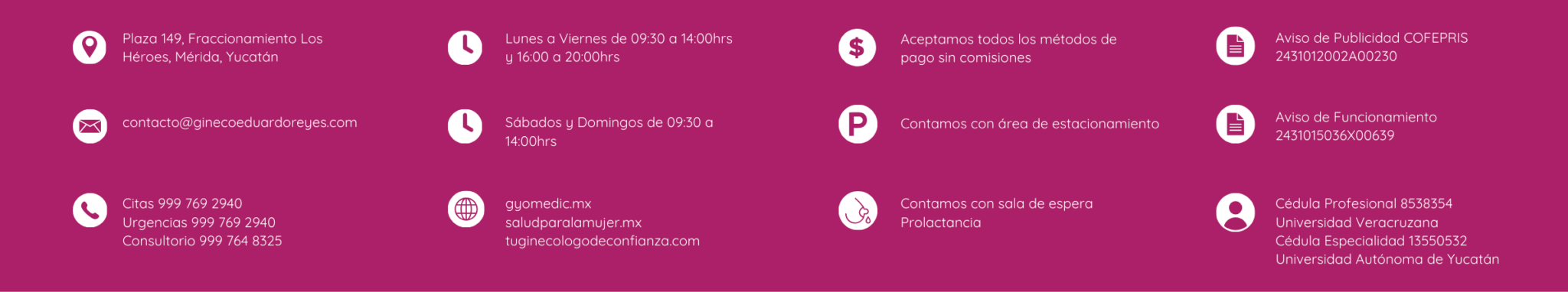 La Ginecologia y la Obstetricia son especialidades médicas y quirúrgicas que tratan las enfermedades del sistema reproductor femenino, sobre todo, la relacionadas con el útero, vagina, ovarios, mamas, en la mujer gestante ó no. La consulta de ginecología debe considerarse una visita obligada al menos dos veces al año, incluso antes de haber iniciado su actividad sexual, y una vez pasada la edad reproductiva, abarca aquella gama de patologías qué afectan a la mujer en ese período, no menos importante lleno de cambios para ellas.